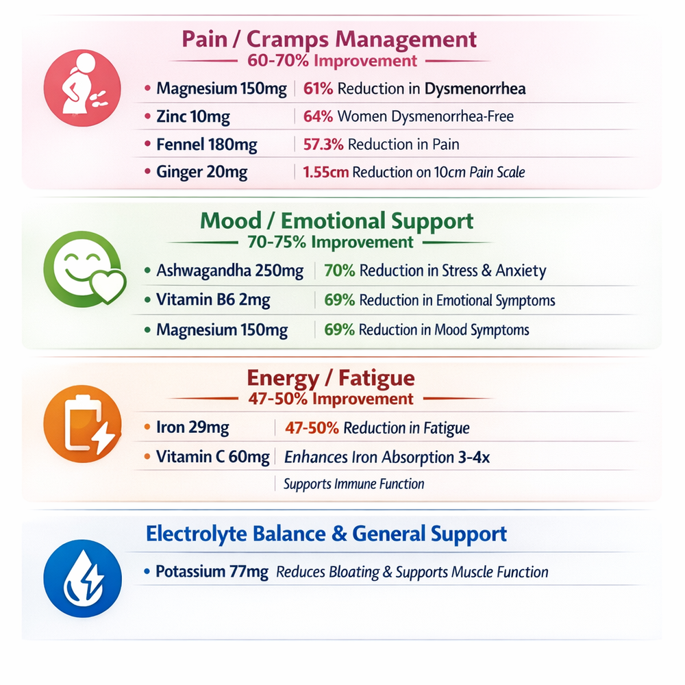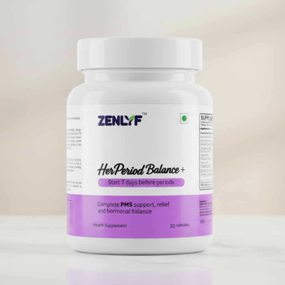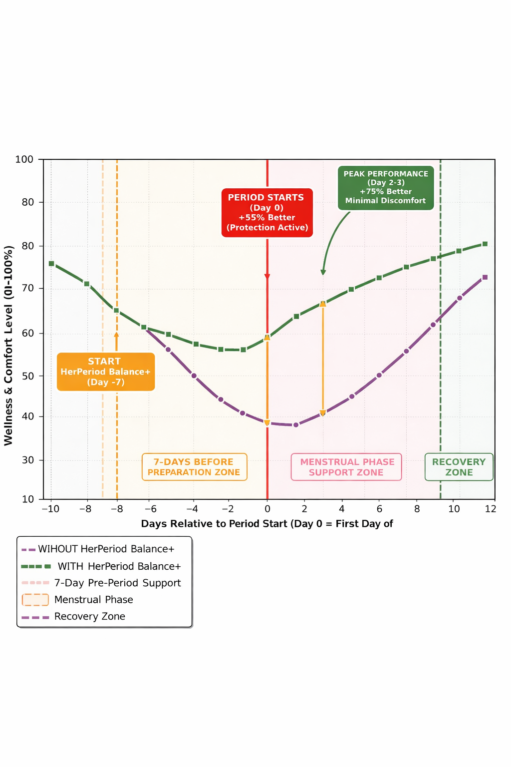 Her Period Balance+ is a science‑backed menstrual support formula designed to make the week before your period actually livable, not something you dread every month. It uses clinically researched ingredients and a 7‑day pre‑period protocol to support hormones, mood, cramps, bloating and overall comfort.
